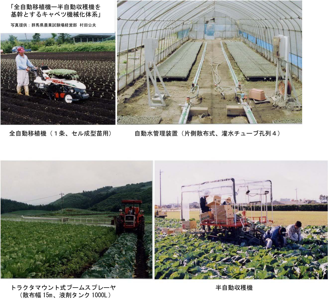 | C-03 | 機械名 | 灌水制御装置 | ライムソーワ | ロータリ | 畦立て機 | 全自動野菜移植機 | 片ブームスプレーヤ | 半自動キャベツ収穫機 |