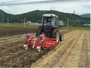 速度0.5m/s以上を確保したが、耕深は14cm未満となった。 麦稈露出量は50g/m2程度と逆転耕より少なくなった。 苗立ち率は80%程度でほぼ目標程度となった。 |